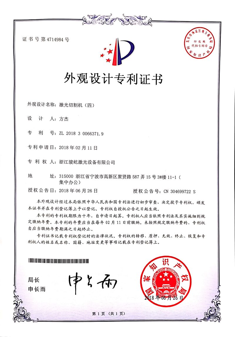 外觀設(shè)計專利證書
